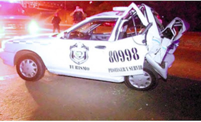 Terrible choque destruye auto de policia pero no hay heridos.