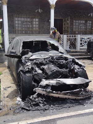Esto ocurrió la tarde del miércoles, en la Barriada Nuevo Colón, en el corregimiento de Sabanitas, Colón. Según testigos, dos sujetos encapuchados con un tanque le rociaron combustible al auto y luego empezaron a dispararle hasta incendiarlo.