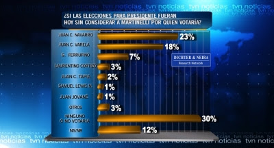 Al preguntar, si las elecciones para presidente fueran hoy y sin considerar a Ricardo Martinelli, por quién votaría. El 23% de los mil 200 encuestados respondieron que Juan Carlos Navarro.