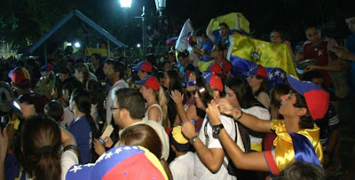 Los manifestantes se encontraban con pailas y ollas, para expresar su descontento por las elecciones realizadas ayer, donde el presidente encargado Nicolás Maduro ganó con el 50.66% de los votos.